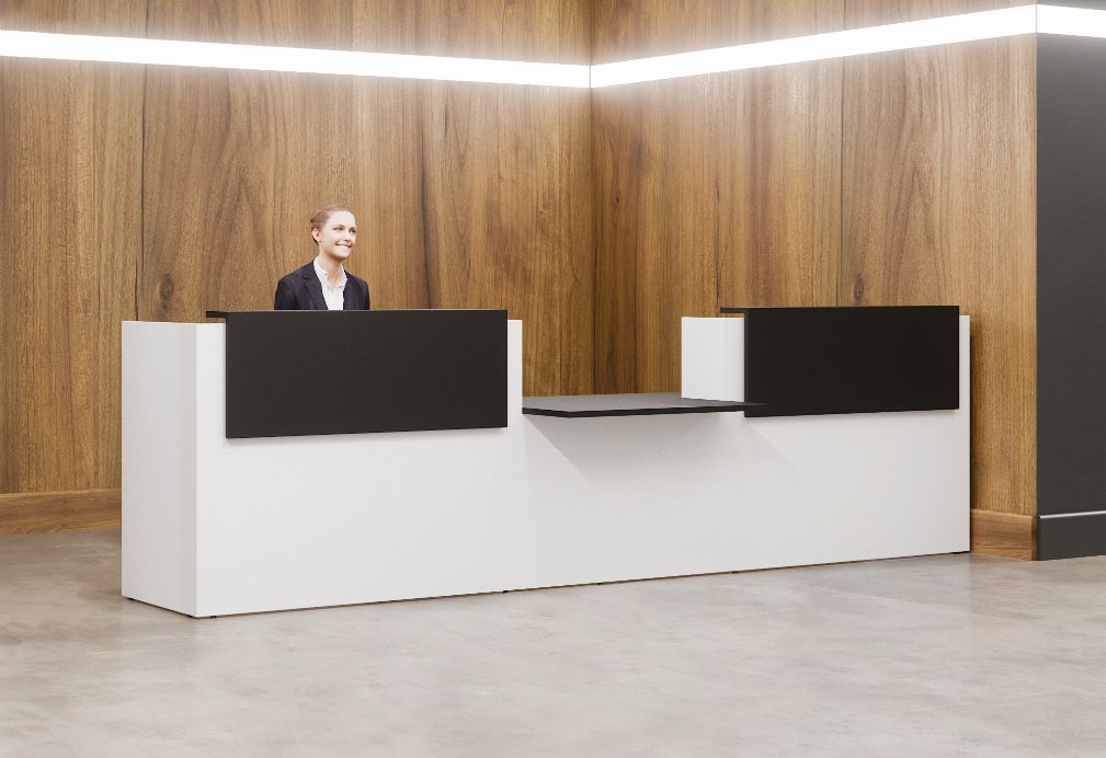 Équipée de modules hauts et bas, cette nouvelle banque d’accueil moderne et fonctionnelle est particulièrement bien adaptée
